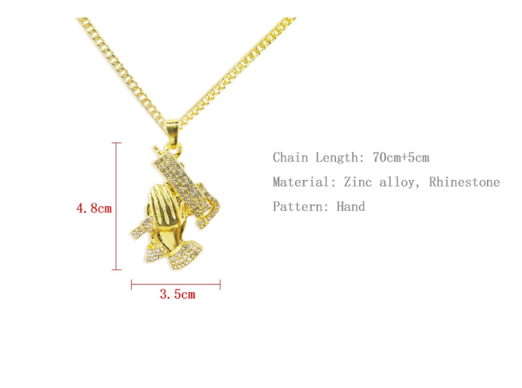 Prayer Hand Necklace, Peace Necklace, Hip Hop Necklace