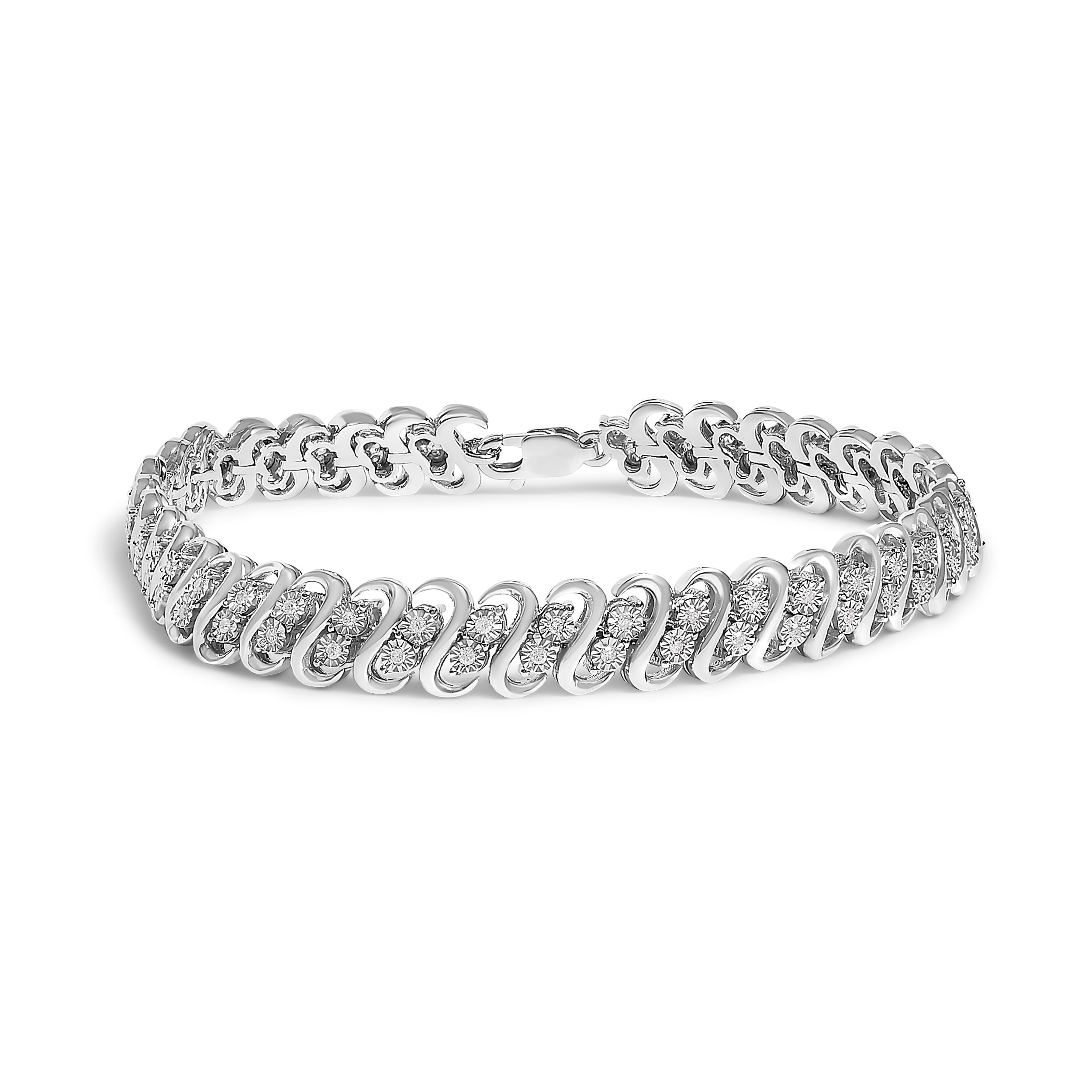 Shimmer and shine with this pleasing diamond link bracelet. Crafted from cool weaves of sterling silver, this mesmerizing choice features sculpted "S"-shaped links. Beaded details and diamonds - each artfully set to enhance size and sparkle - glisten in pairs between each link. Splendid with 1/2 ct. t.w. of diamonds and a bright polished shine, this 7.5-inch bracelet secures with a lobster claw clasp.