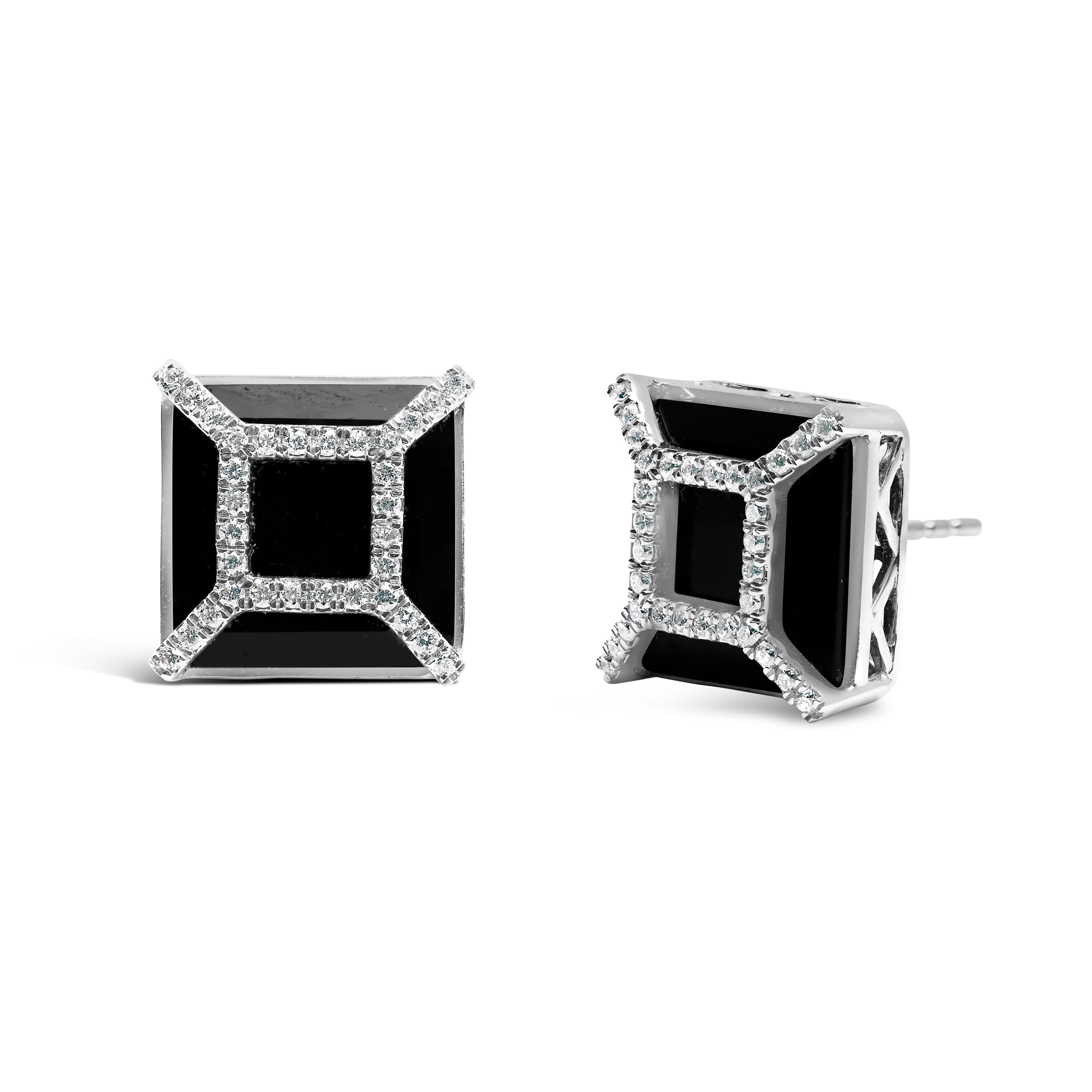 14K White Gold 3/8ct Diamond with 11x11MM Black Onyx Stud Earrings (G-H Color, SI1-SI2 Clarity)
