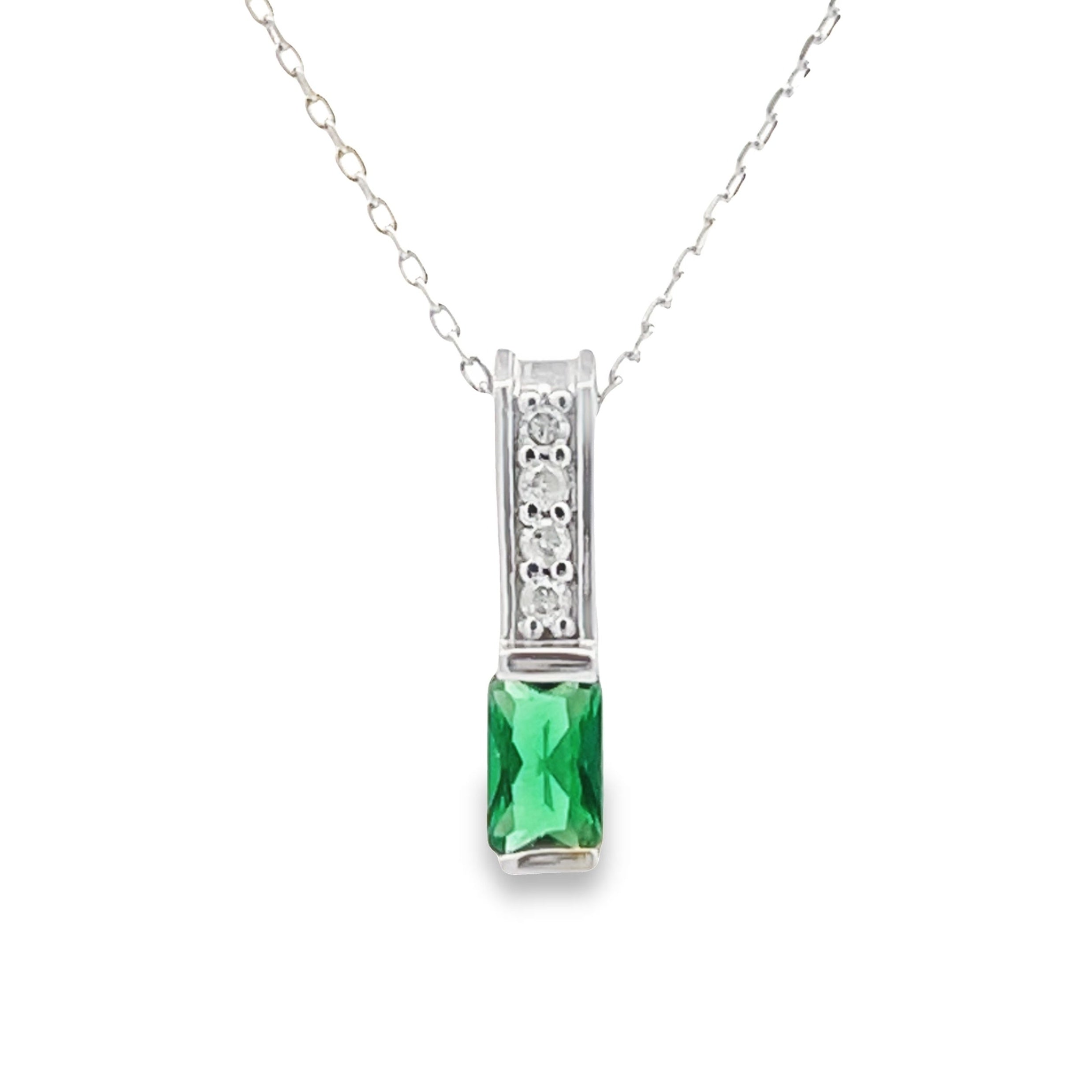 Fashion Pendants, Gemstone(s): Created Emerald 0ct Diamond 0.06ct, Metal: 10KT White Gold, Color: G-H, Cut: Round, Clarity: I1-I3, Weight: 1.2 grams, Length: 18,