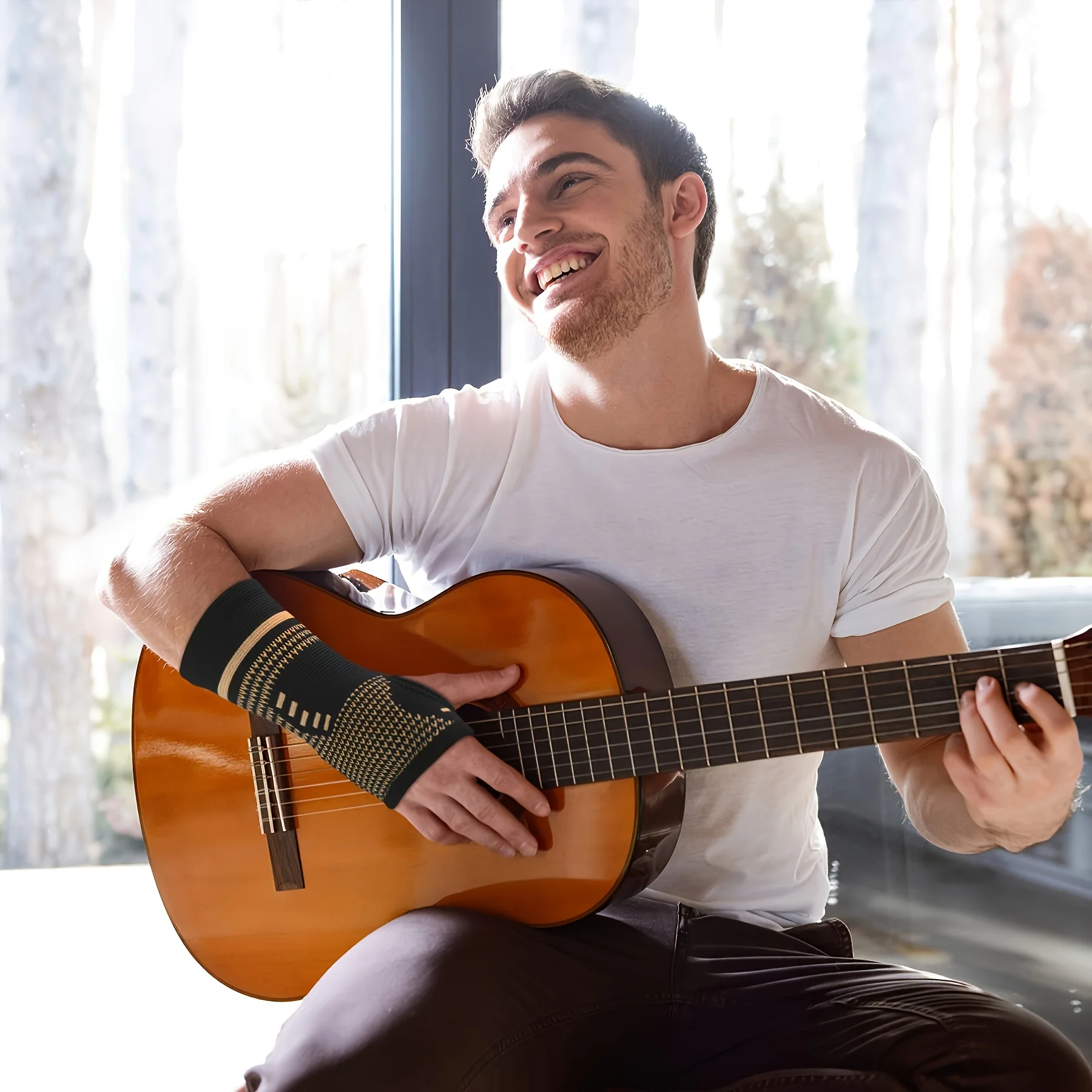 1 Pair Copper Wrist Compression Sleeves Support Brace Unisex for Sports Fitness Workouts Typing Breathable Hand Protection